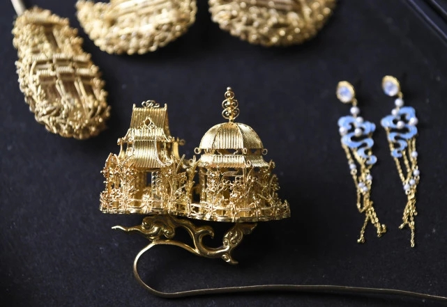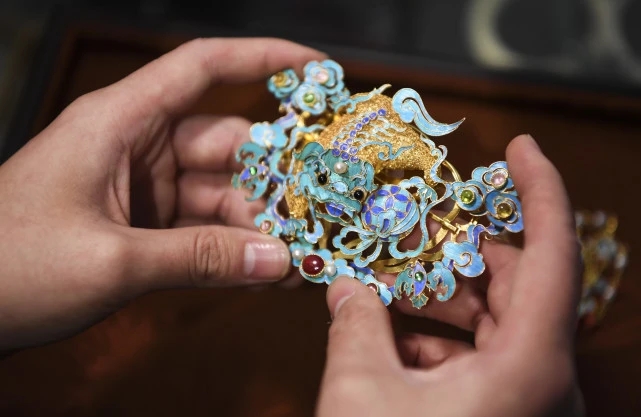 Five years ago, Gu opened a filigree inlay workshop. Now, the 15-member team from the workshop is able to produce about 1,000 pieces of filigree inlay works in a year. Their flagship artwork is one that was created by using more than 1-million-yuan worth of raw materials, and it is now used for display purposes only. One of the team’s videos that shows Gu repairing an old bridal crown was watched more than 7.4 million times on the short-video sharing platform Kuaishou, revealing people’s growing interest in the traditional craft.