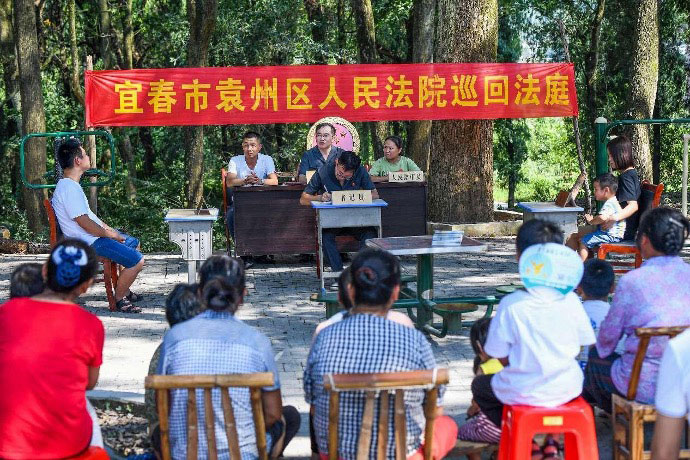 Judges of the people's court of Yuanzhou district, Yichun city, east China's Jiangxi province, hear a divorce case in Qianjin village, Jinrui township in the district, July 14, 2021. (Photo by Zhou Liang/People’s Daily Online)