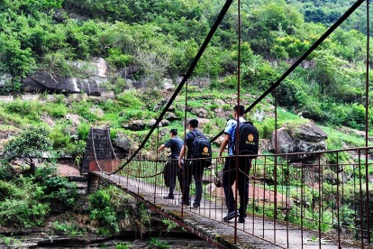 Judges of the people's court of Yunyang county, southwest China's Chongqing municipality, go to Baozheng village, Shuangtu township in the county, with their work equipment to hear a tort case. (Photo by Rao Guojun/People's Daily Online)?