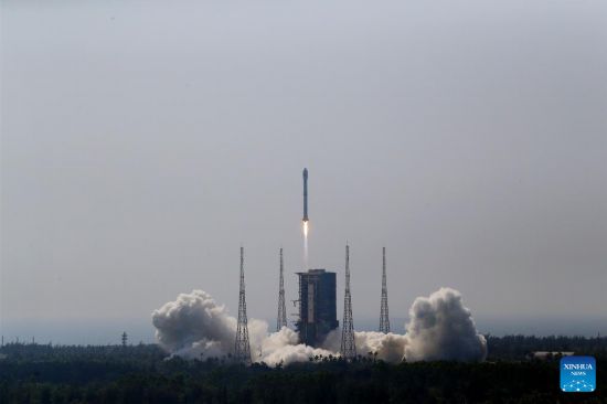 The Long March-8 rocket carrying 22 satellites blasts off from the Wenchang Spacecraft Launch Site in south China's Hainan Province, Feb. 27, 2022. (Photo by Tu Haichao/Xinhua)