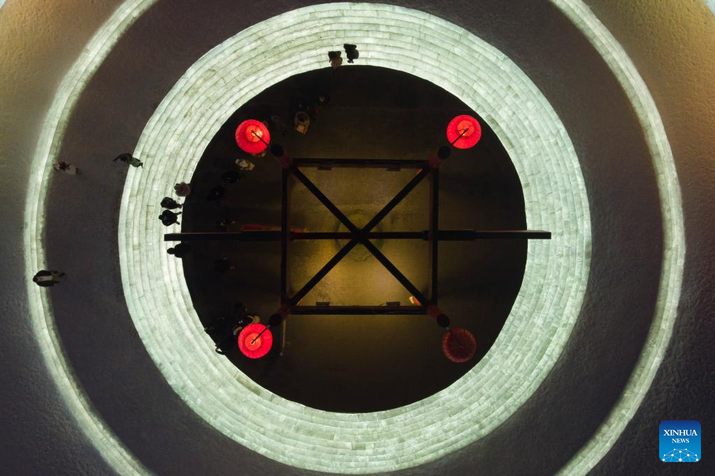 Aerial photo shows tourists visiting the Harbin Ice-Snow World in Harbin, northeast China's Heilongjiang Province, Feb. 27, 2022. The 23rd Harbin Ice-Snow World closed on Sunday. (Xinhua/Zhang Tao)
