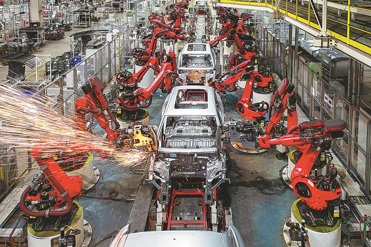 An NEV production line outputs smart electric vehicles in Jinhua, Zhejiang province, on Feb 17. Proceeds from local bonds will fund transportation, energy and green projects. [Photo by Hu Xiaofei/For China Daily]
