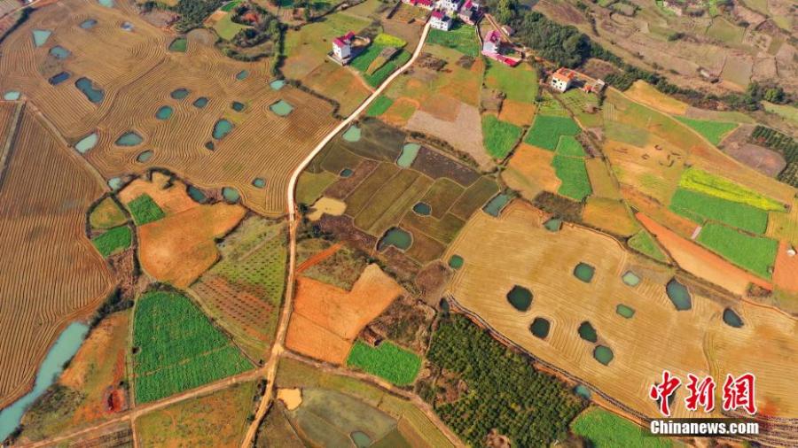 Aerial view shows the fields ready for spring ploughing in Taihe county, Ji'an, Jiangxi Province, Feb. 25, 2022. The ploughed fields look like fingerprints of the Earth. (Photo: China News Service/Deng Heping)