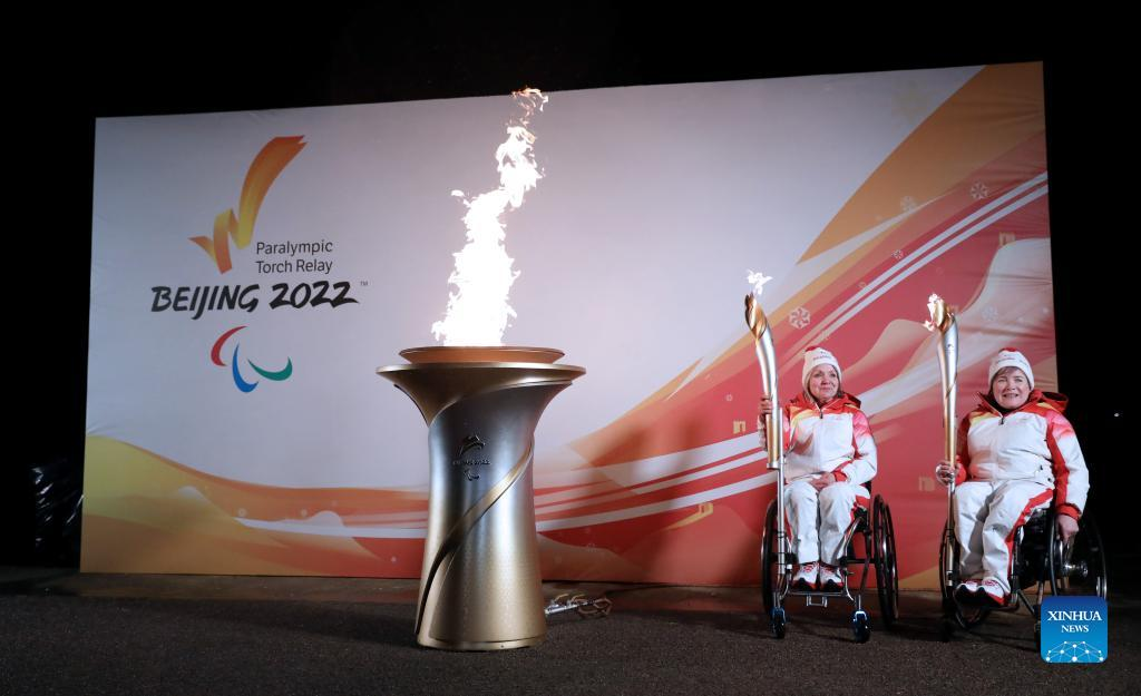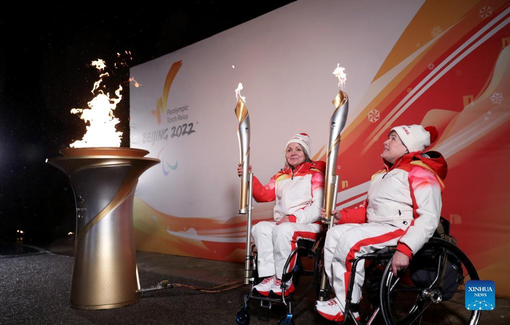 STOKE MANDEVILLE, England, Feb. 28 (Xinhua) -- The Paralympic Heritage Flame for the Beijing 2022 Winter Paralympic Games was lit on Monday in Stoke Mandeville, a village northwest of London that is recognized as the birthplace of the Paralympic Games.