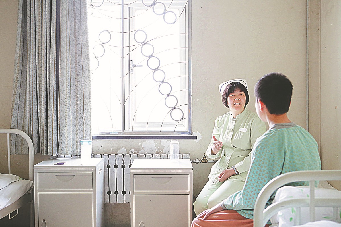 A nurse comforts a teenager at the hospital. WANG CHENG/FOR CHINA DAILY