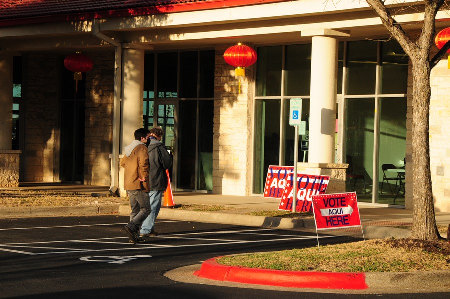 Voters arrive at a polling station for the Texas 2022 primary election in Austin, Texas, the United States, on March 1, 2022. (Photo by Bo Lee/Xinhua)