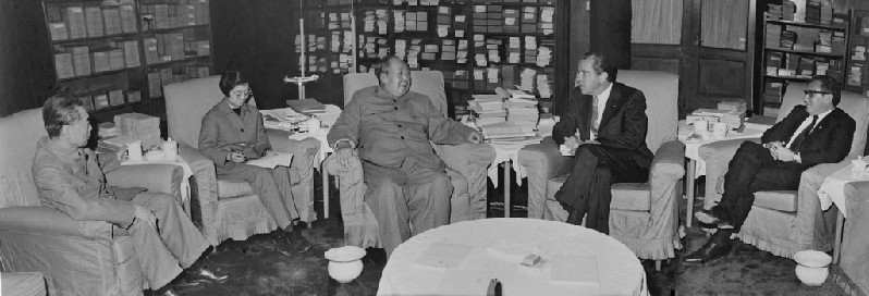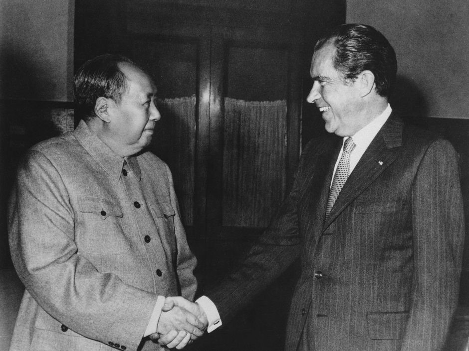 Late Chairman Mao Zedong meets with then U.S. President Richard Nixon at Zhongnanhai, the central leadership compound in downtown Beijing, Feb. 21, 1972. (File photo)