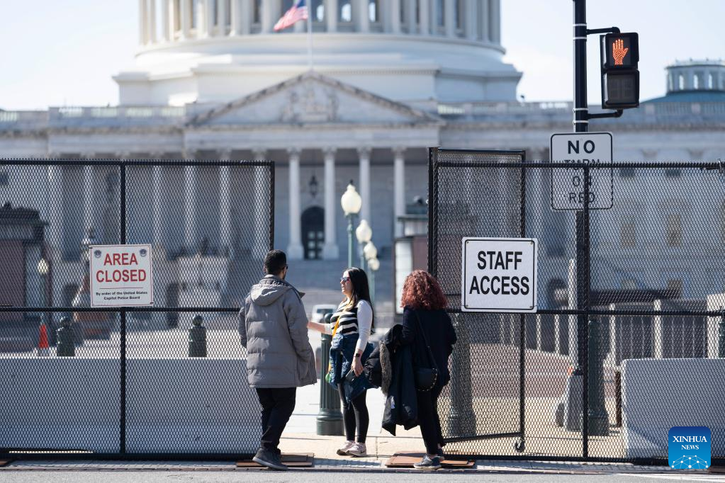 WASHINGTON, Feb. 27 (Xinhua) -- Fencing has been reinstalled around the U.S. Capitol ahead of President Joe Biden's State of the Union address slated for Tuesday night.