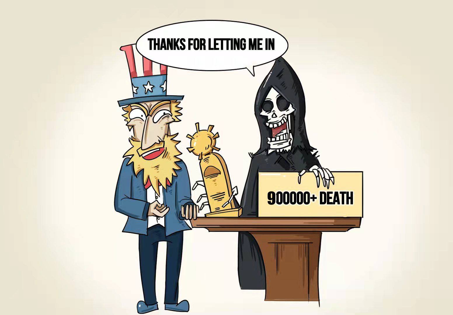 By late February 2022, the COVID-19 death toll in the U.S. had already surpassed 940,000. (Cartoon by Lu Lingxing)