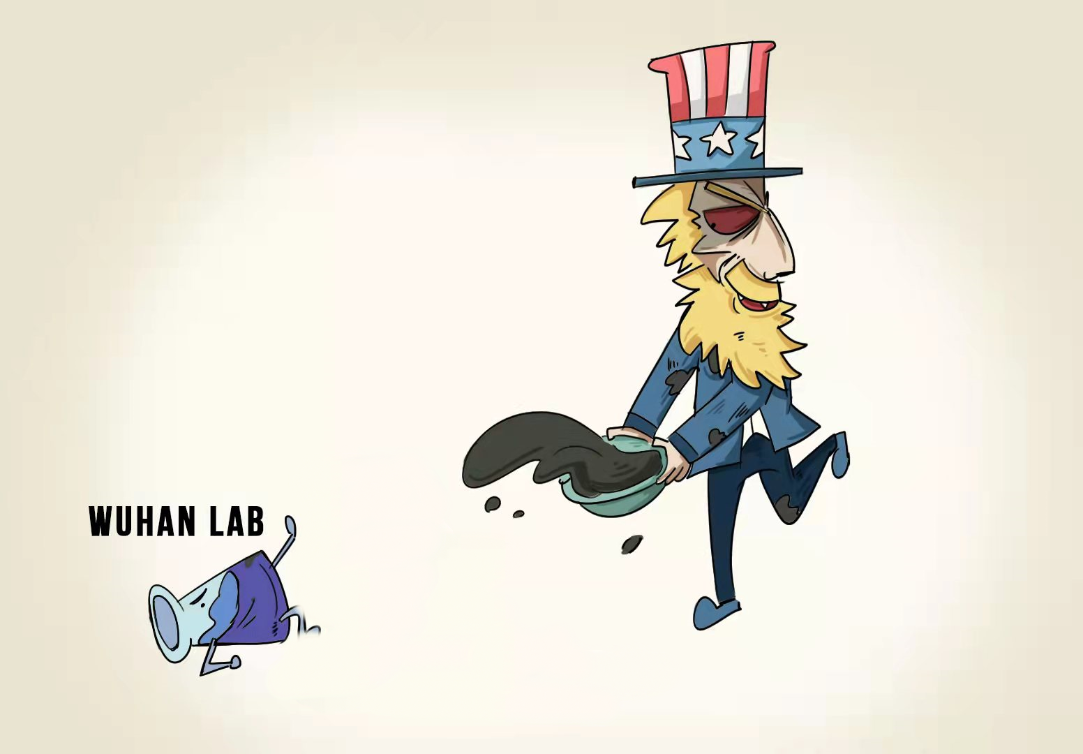 In an attempt to deflect away from the embarrassment caused by their government’s incompetence in responding to COVID-19, some U.S. politicians fabricated the “lab leak theory” on COVID-19 to try to shift the blame to China. (Cartoon by Lu Lingxing)