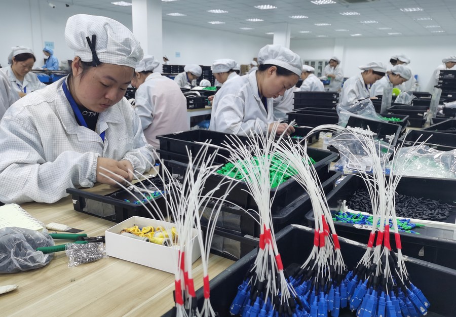 Workers are busy at a company's workshop in an innovation incubation park for micro, small and medium enterprises in Renshou County of Meishan City, southwest China's Sichuan Province, Oct. 19, 2020. (Photo by Pan Jianyong/Xinhua)