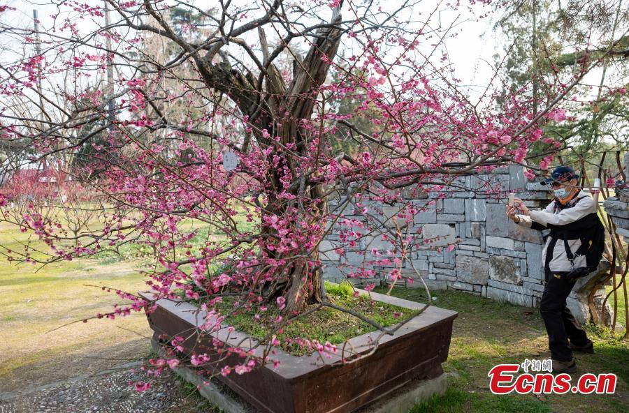 A 600-year-old plum tree is in full blossom at Xuanwu Lake Park, Nanjing, capital of east China's Jiangsu Province, March 2, 2022. (Photo: China News Service/Yang Bo)