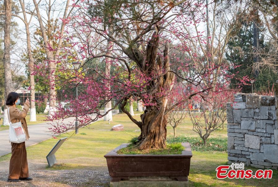 A 600-year-old plum tree is in full blossom at Xuanwu Lake Park, Nanjing, capital of east China's Jiangsu Province, March 2, 2022. (Photo: China News Service/Yang Bo)