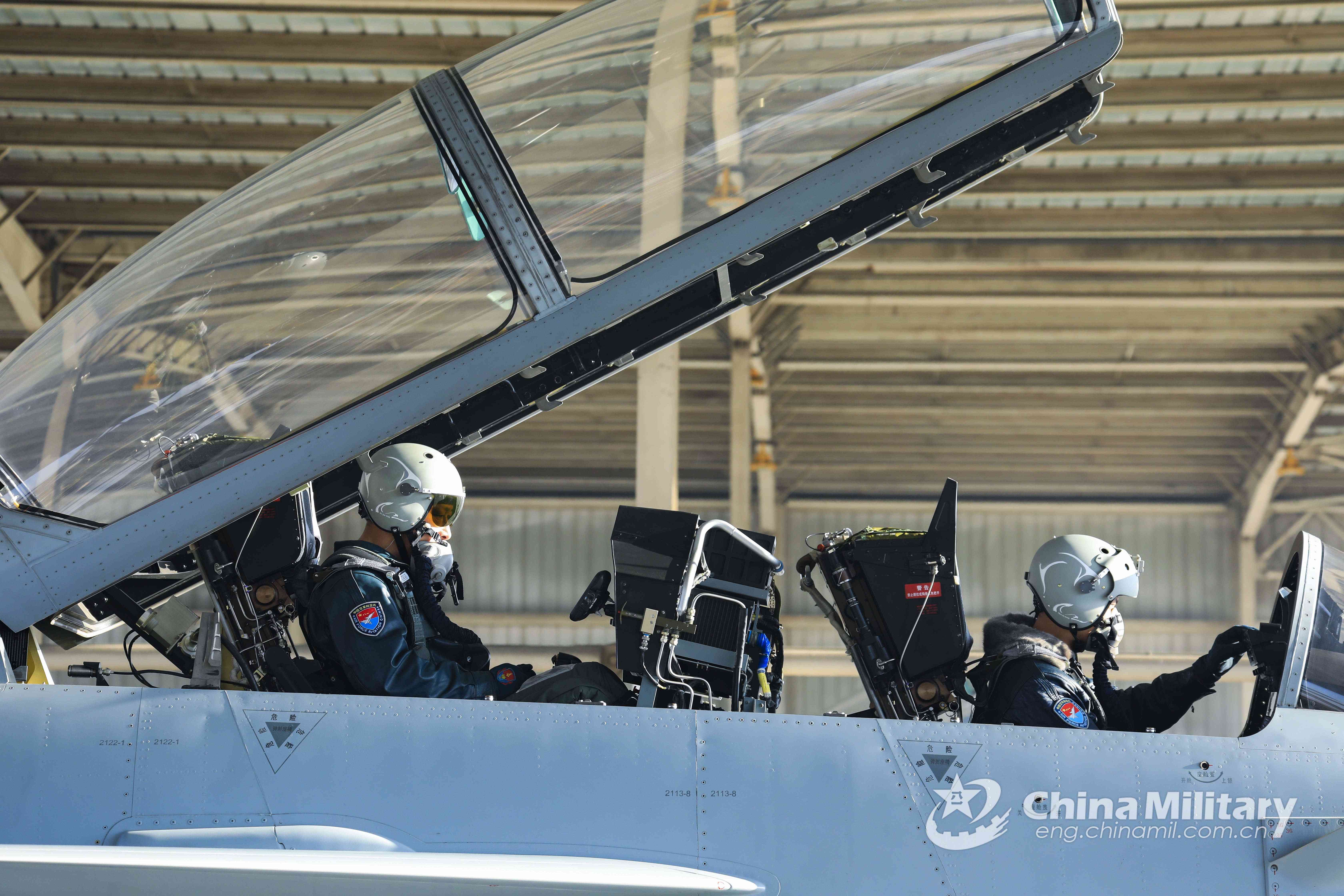 Pilots assigned to an aviation brigade of the air force under the PLA Central Theater Command make the last-minute preparation on a J-10 fighter jet prior to a round-the-clock combat flight training exercise on February 23, 2022. (eng.chinamil.com.cn/Photo by Jin Huidong)