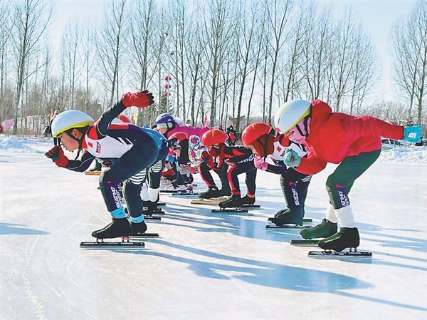 Li Yahui, a national speed skating champion, was recently invited to give a class on speed skating to children in Youyi county, Shuangyashan city, northeast China’s Heilongjiang Province.