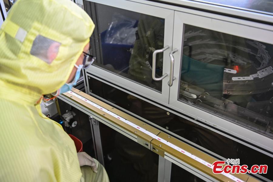 An employee works on a COVID-19 test kits production line in Guangzhou, south China's Guangdong Province, March 2, 2022. (Photo: China News Service/Chen Jimin)