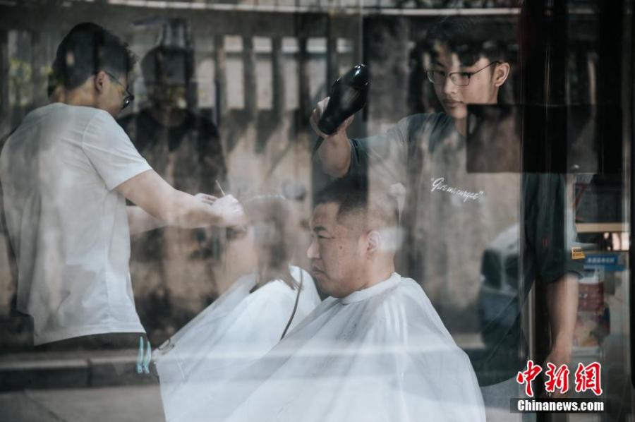 People have their hair cut to celebrate Longtaitou Festival in Fuzhou, Fujian Province, March 4, 2022. (Photo: China News Service/Li Nanxuan)
