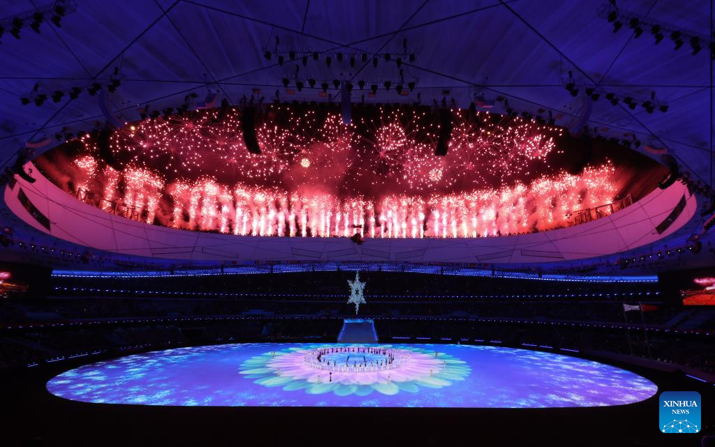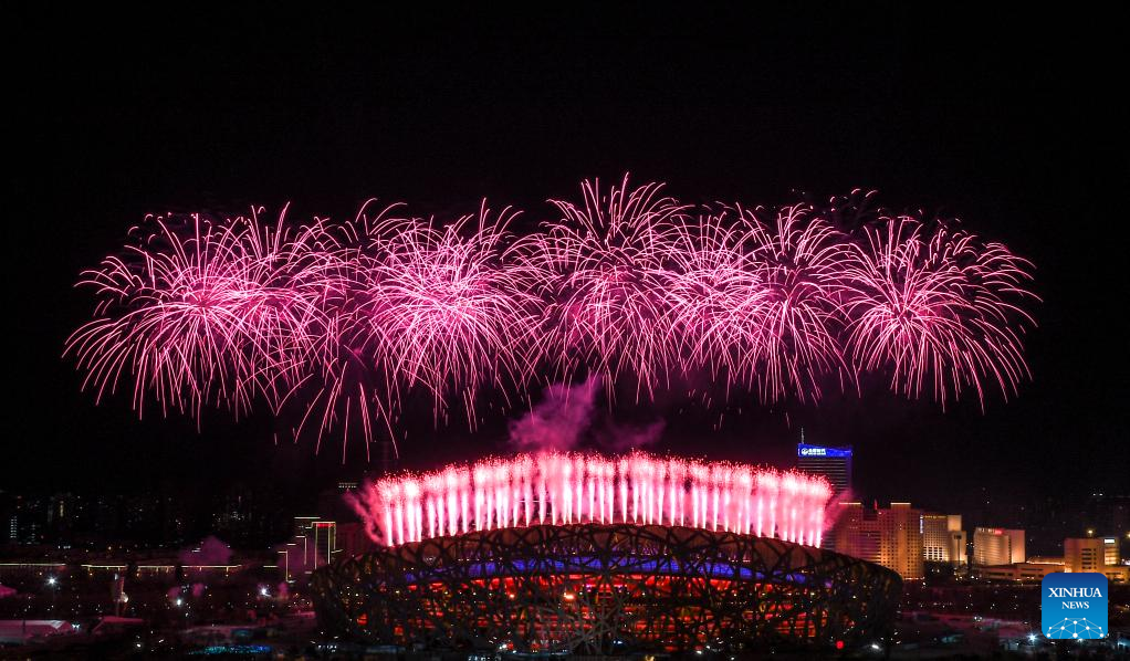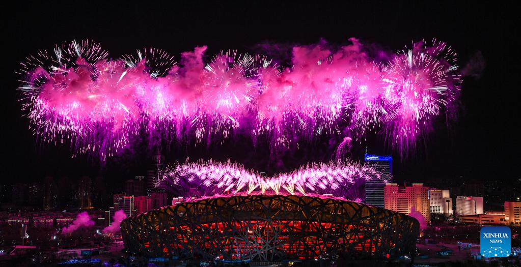 Fireworks illuminate the night sky during the opening ceremony of the Beijing 2022 Paralympic Winter Games at the National Stadium in Beijing, capital of China, March 4, 2022. (Xinhua/Zhang Bowen)