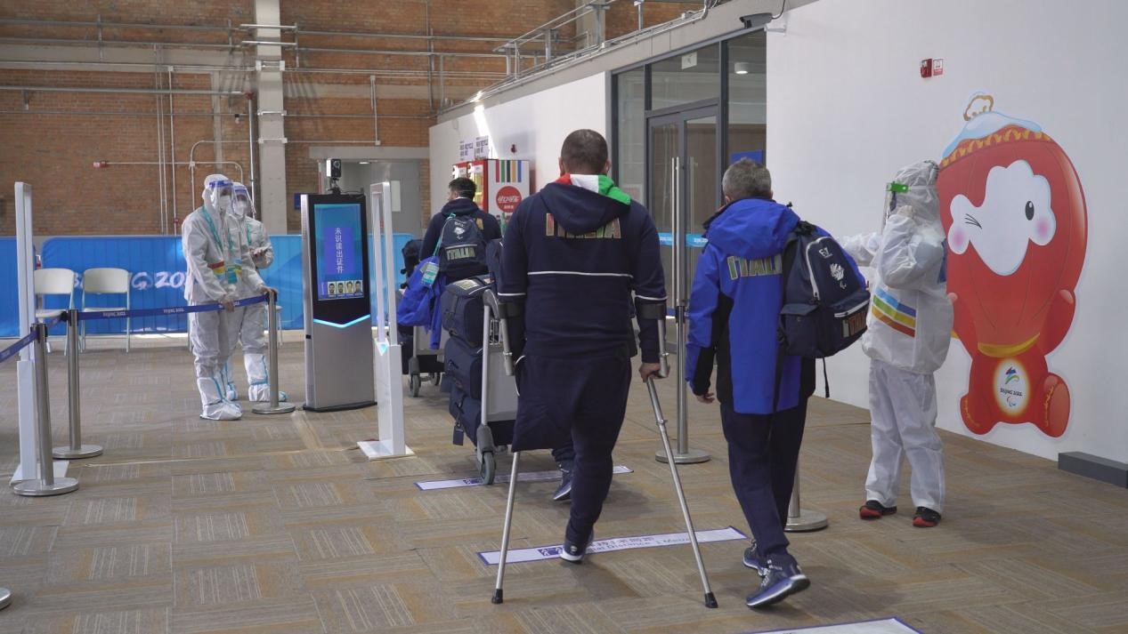 Italian athletes check in at one of the Beijing 2022 Winter Paralympic Villages on the first day since the official opening of the villages, Feb. 25, 2022. (Photo/Official website of the Beijing Organising Committee for the 2022 Olympic and Paralympic Winter Games)