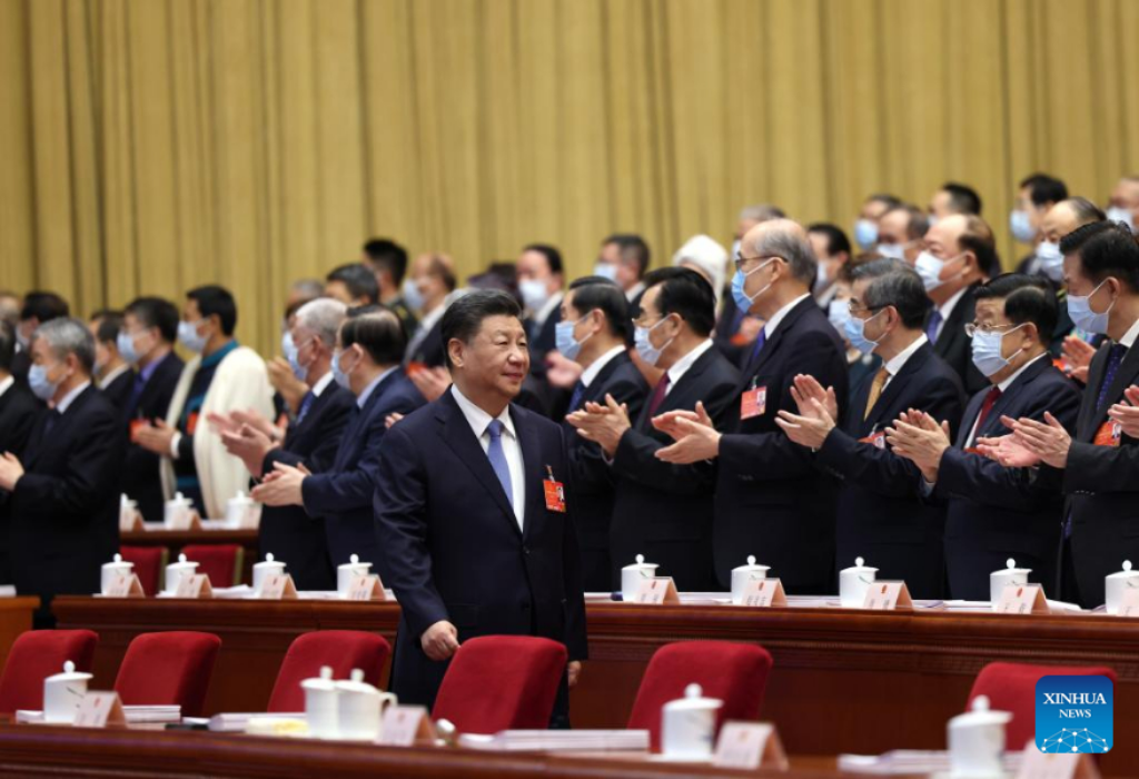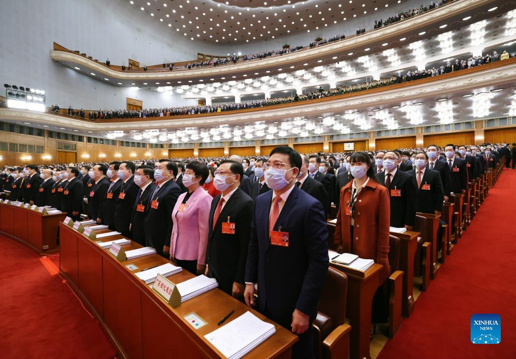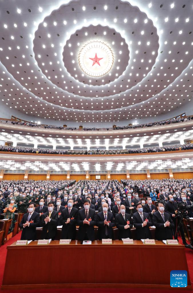 The fifth session of the 13th National People's Congress (NPC) opens at the Great Hall of the People in Beijing, capital of China, March 5, 2022. Leaders of the Communist Party of China and the state Xi Jinping, Li Keqiang, Wang Yang, Wang Huning, Zhao Leji, Han Zheng and Wang Qishan attended the opening meeting of the fifth session of the 13th NPC, and Li Zhanshu presided over the meeting. (Xinhua/Ju Peng)