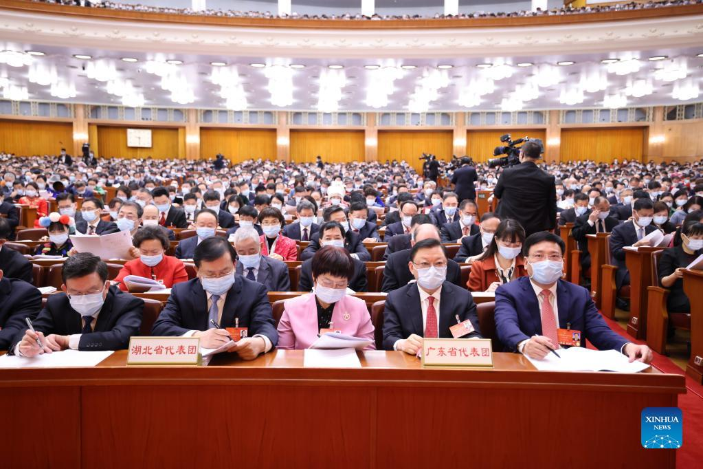 Deputies attend the opening meeting of the fifth session of the 13th National People's Congress (NPC) at the Great Hall of the People in Beijing, capital of China, March 5, 2022. (Xinhua/Xing Guangli)