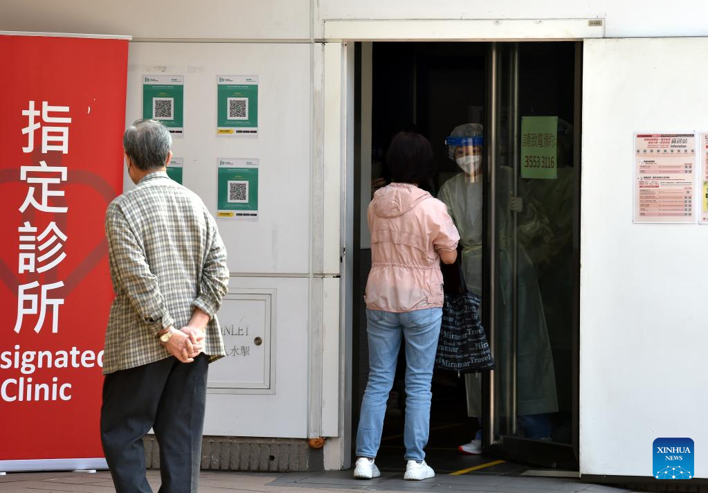 A citizen waits to see a doctor at a designated clinic in south China's Hong Kong, March 5, 2022. The Hong Kong Special Administrative Region (HKSAR) reported 37,529 new COVID-19 cases and 150 deaths on Saturday, official data showed. (Xinhua/Lo Ping Fai)