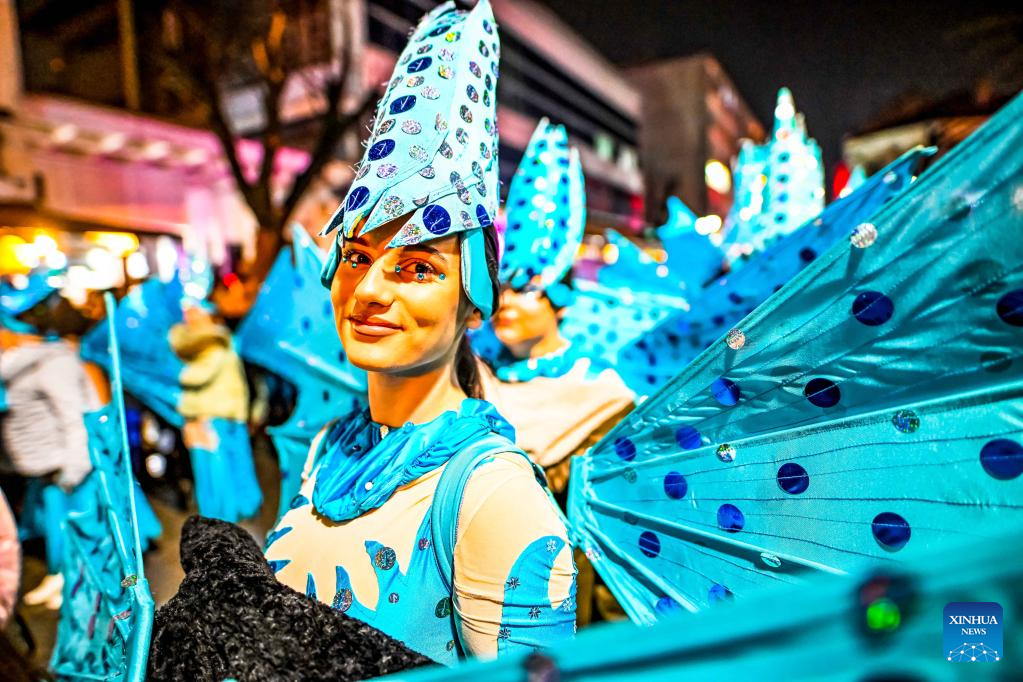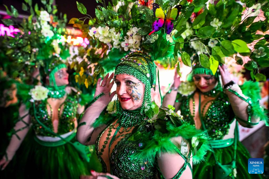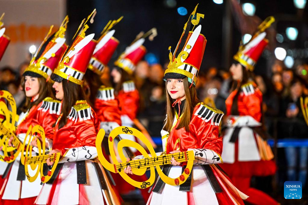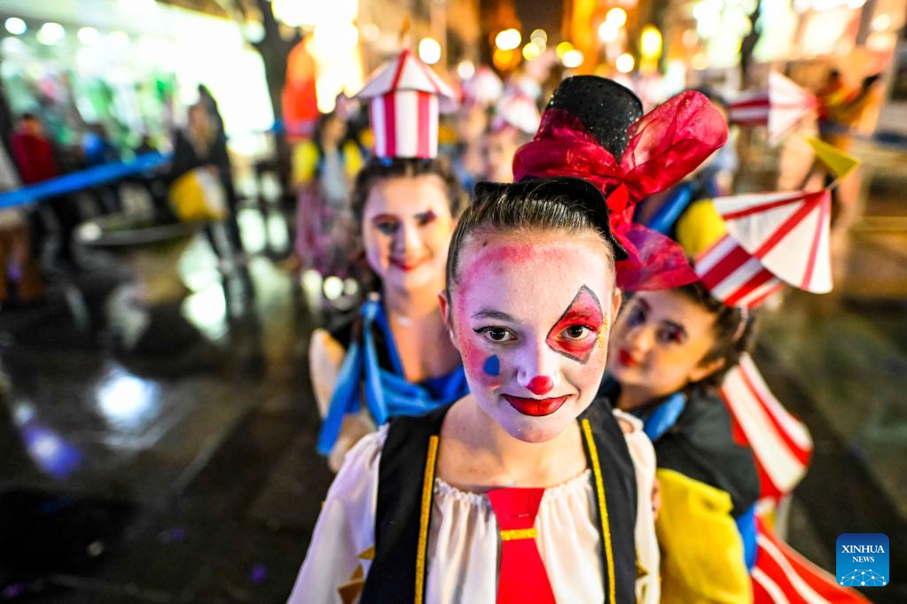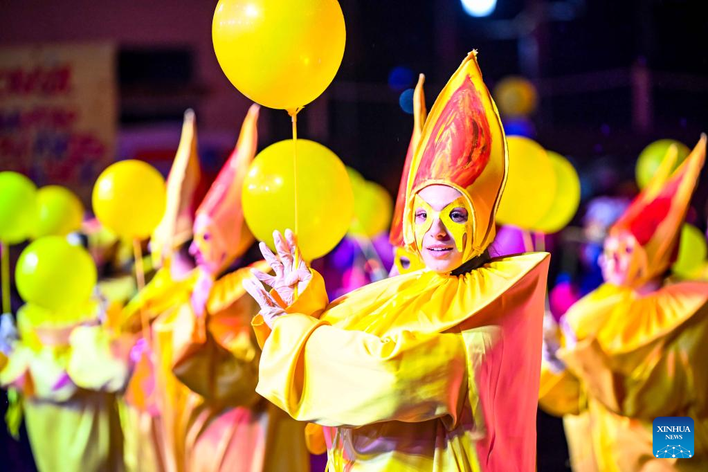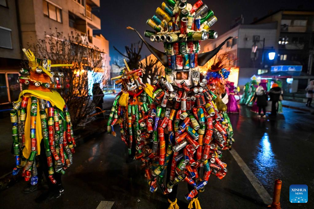 Costumed revelers perform during the great evening carnival on the streets of Strumica, North Macedonia, March 5, 2022. (Photo by Tomislav Georgiev/Xinhua)