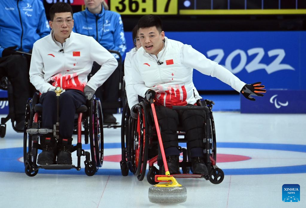 BEIJING, March 6 (Xinhua) -- China beat Estonia 9-3 for its first victory from the wheelchair curling competitions at the 2022 Beijing Paralympic Winter Games here on Sunday.