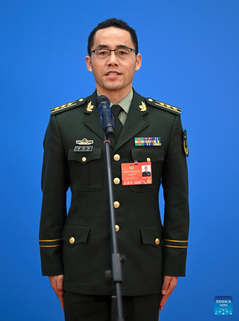 Xixima, a member of the 13th National Committee of the Chinese People's Political Consultative Conference (CPPCC), attends an interview via video link ahead of the second plenary meeting of the fifth session of the 13th CPPCC National Committee at the Great Hall of the People in Beijing, capital of China, March 7, 2022. (Xinhua/Jin Liangkuai)