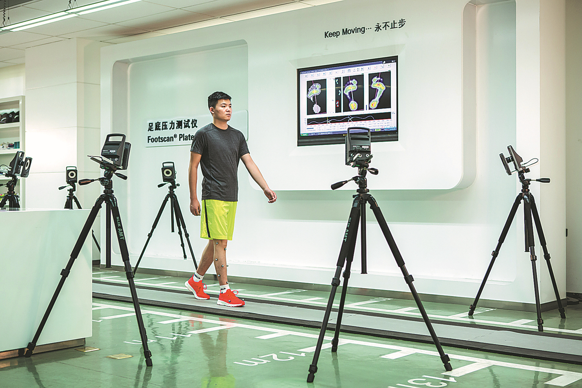 An athlete works at one of Anta Sports' motion laboratories. CHINA DAILY
