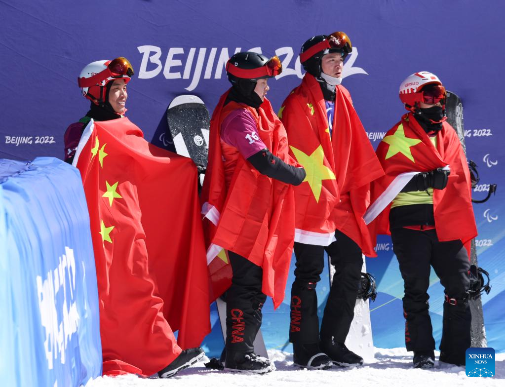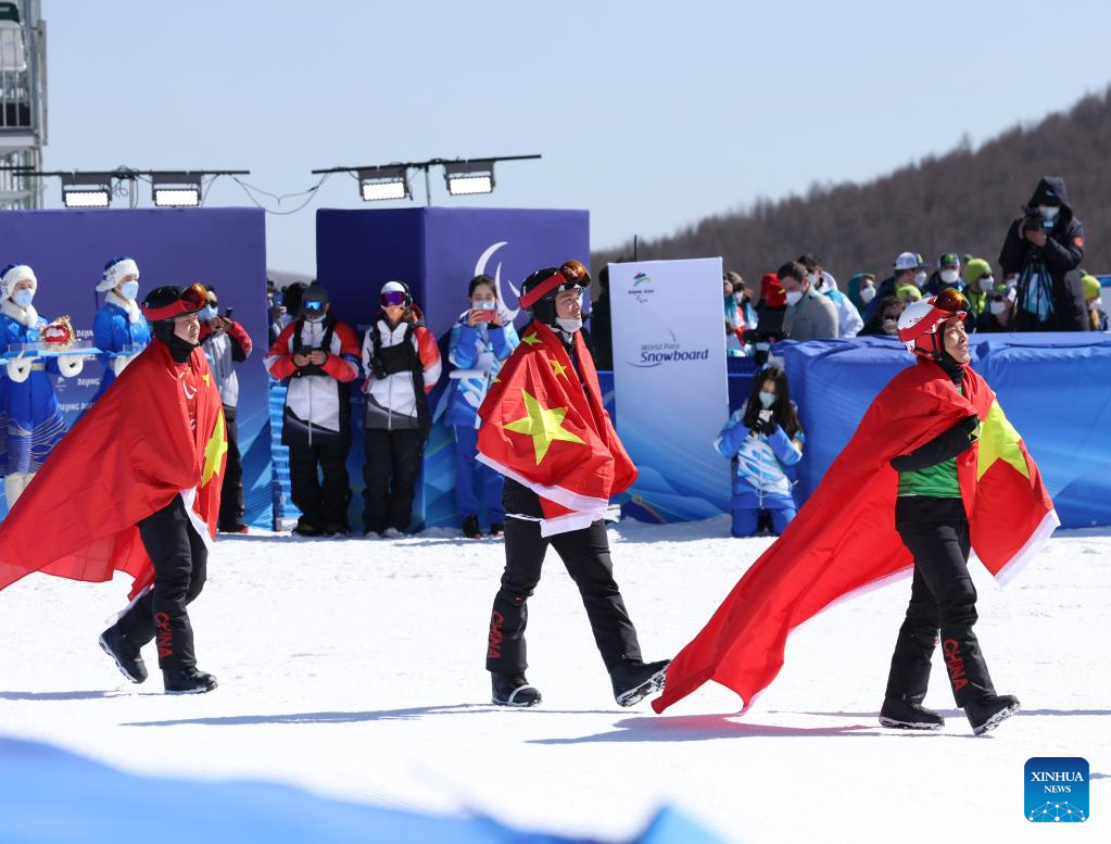CHONGLI, Zhangjiakou, March 7 (Xinhua) -- Host nation China made a clean sweep of Para snowboard men's cross SB-UL medals at Beijing 2022 here on Monday, with Ji Lijia topping the podium.