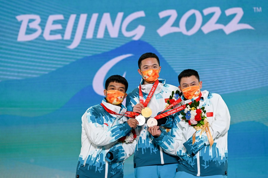 China had a history-making podium sweep in snowboard men's cross SB-UL to consolidate its leading position on the medal tally at the Beijing 2022 Paralympic Winter Games.