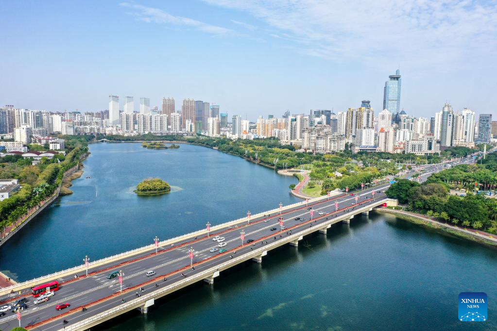 Aerial photo taken on March 7, 2022 shows the Nanhu Bridge in Nanning, south China's Guangxi Zhuang Autonomous Region. (Xinhua/Cao Yiming)