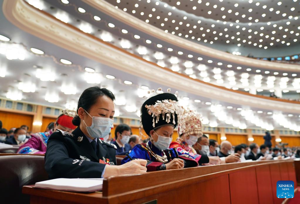 Deputies to the 13th National People's Congress (NPC) attend the second plenary meeting of the fifth session of the 13th NPC at the Great Hall of the People in Beijing, capital of China, March 8, 2022. (Xinhua/Gao Jie)