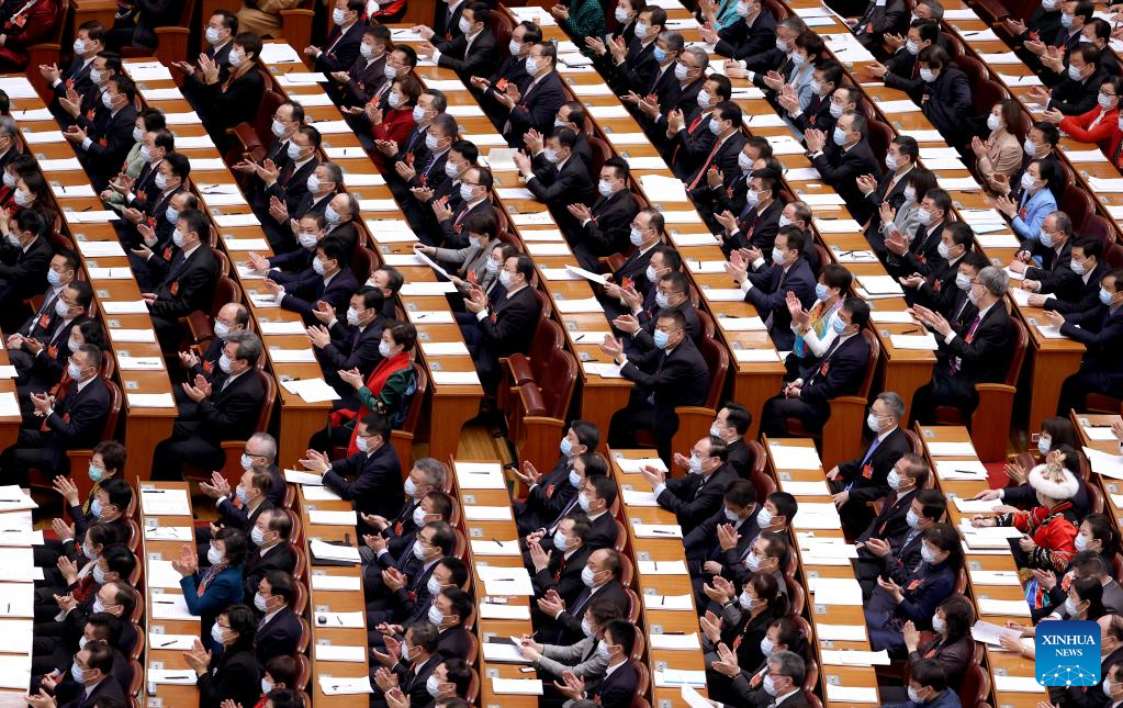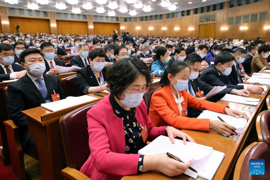 Deputies to the 13th National People's Congress (NPC) attend the second plenary meeting of the fifth session of the 13th NPC at the Great Hall of the People in Beijing, capital of China, March 8, 2022. (Xinhua/Wang Ye)