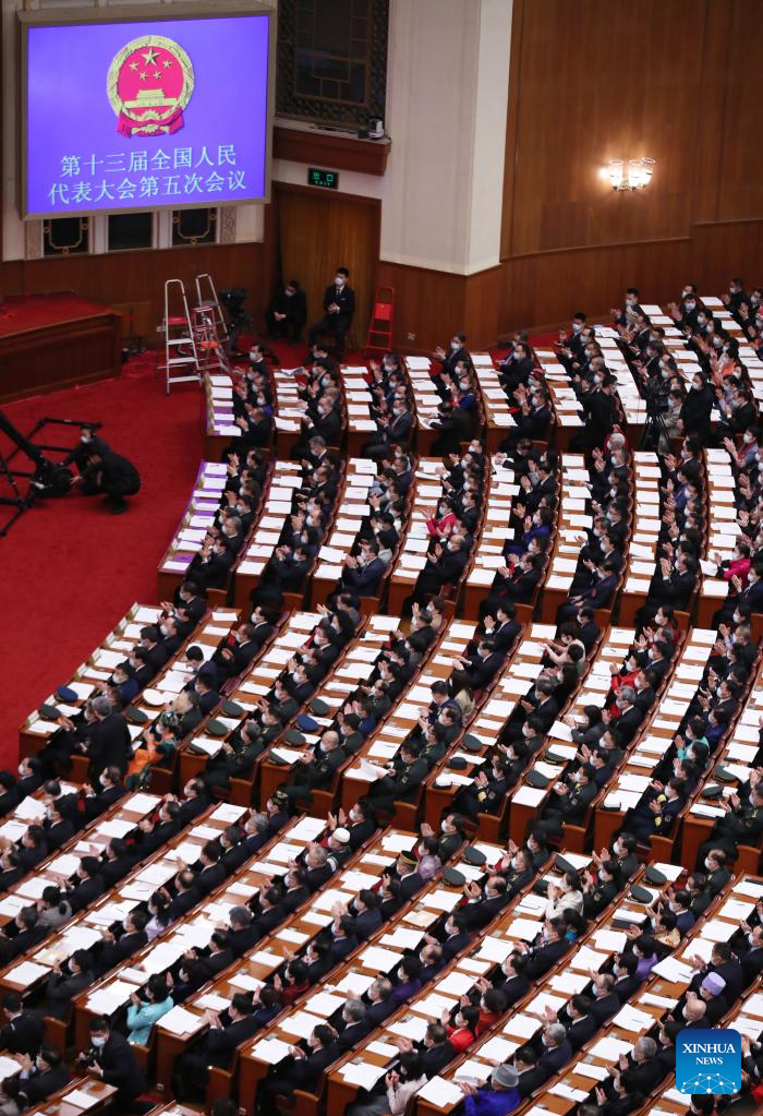 The second plenary meeting of the fifth session of the 13th National People's Congress (NPC) is held at the Great Hall of the People in Beijing, capital of China, March 8, 2022. (Xinhua/Liu Weibing)