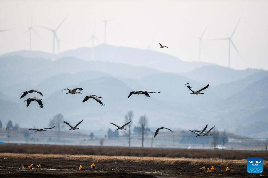 Migrant birds are seen at the Caohai National Nature Reserve in Weining Yi, Hui and Miao Autonomous County, southwest China's Guizhou Province, March 8, 2022. (Xinhua/Yang Wenbin)