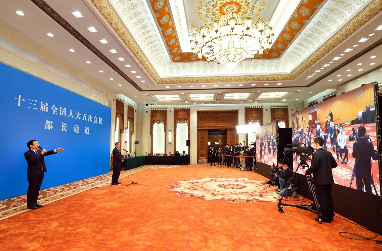 Heads of three State Council departments were interviewed via video link after the opening meeting of the fifth session of the 13th National People's Congress (NPC) at the Great Hall of the People in Beijing on March 5.