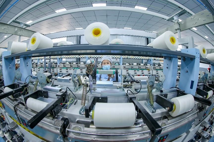 A woman works at a workshop of a special textile company in Daying Economic Development Zone in southwest China's Sichuan province, March 4, 2022. (People's Daily Online/Liu Changsong)