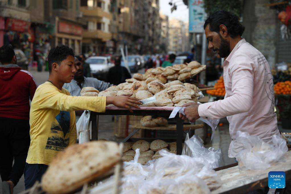 A boy buys bread at a market in Cairo, Egypt, on March 9, 2022. Egyptian Prime Minister Mostafa Madbouly on Wednesday pledged to keep food prices in the fair range amid the ongoing conflict between Russia and Ukraine. (Xinhua/Ahmed Gomaa)