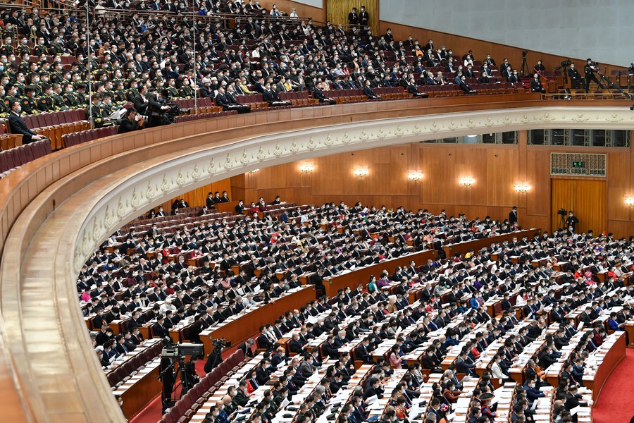 The fifth session of the 13th National People's Congress (NPC) opens at the Great Hall of the People in Beijing, capital of China, March 5, 2022. (Xinhua/Gao Jie)