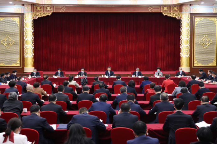 President Xi Jinping visits political advisors at the fifth session of the 13th National Committee of the Chinese People's Political Consultative Conference on March 6, 2022.