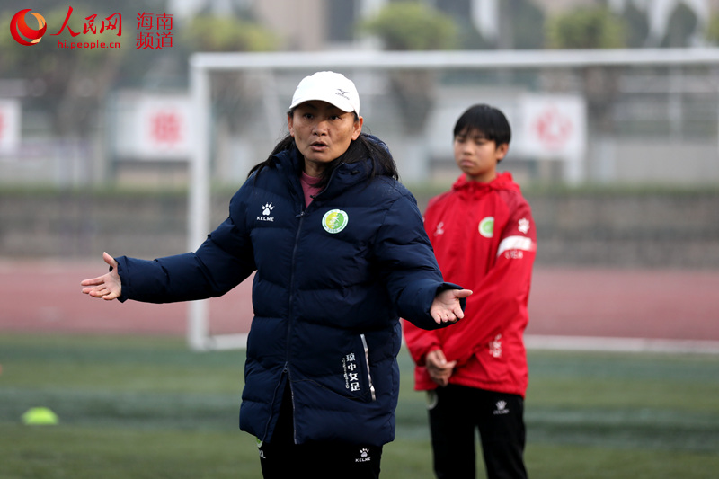 Photo shows Wu Xiaoli, a coach of the Qiongzhong Women’s Football Team in south China’s Hainan Province. (People’s Daily Online/Fu Wuping)