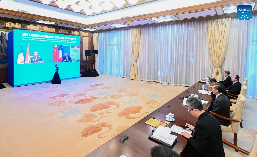 BEIJING, March 10 (Xinhua) -- Chinese State Councilor and Foreign Minister Wang Yi on Thursday exchanged views on the situation in Ukraine respectively with his French and Italian counterparts via video link.