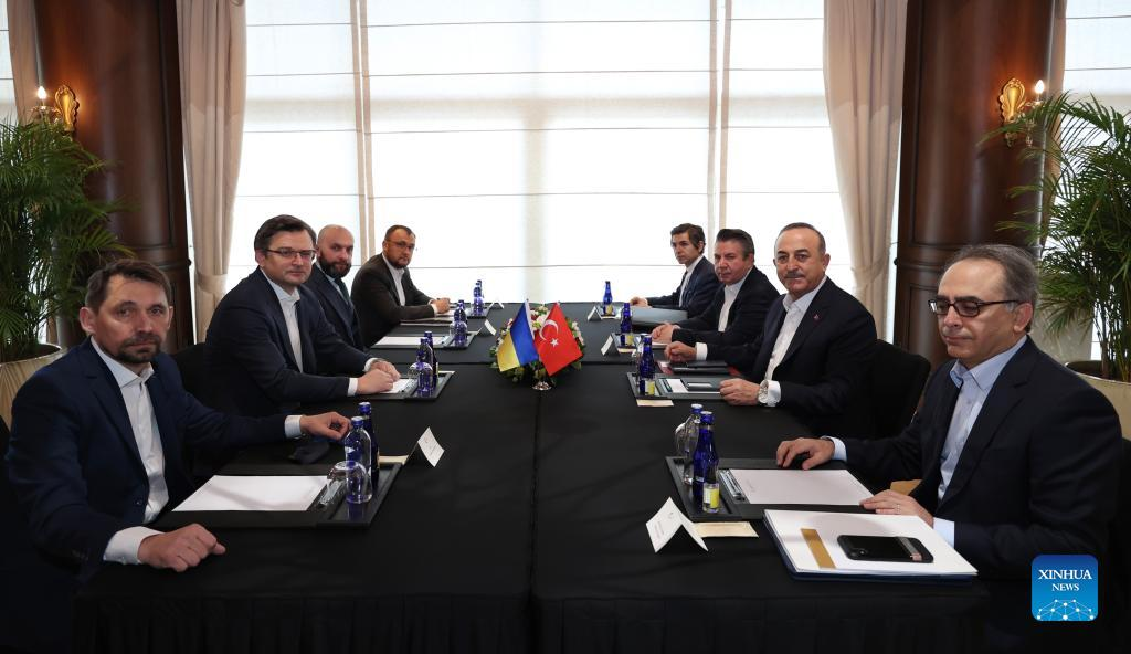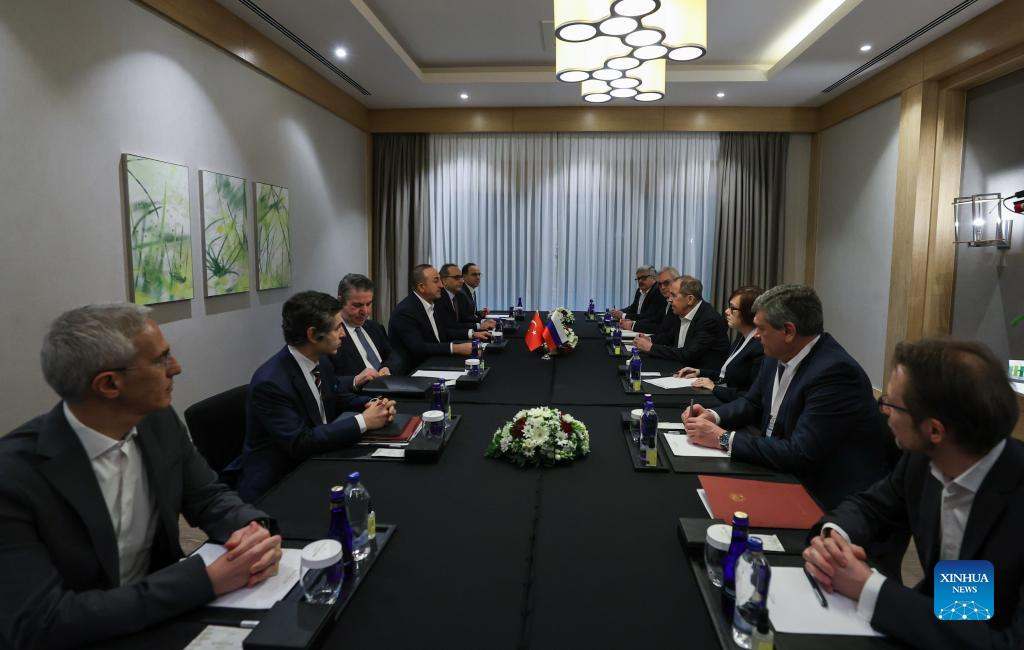ANTALYA, Turkey, March 10 (Xinhua) -- Russian Foreign Minister Sergey Lavrov and his Ukrainian counterpart Dmytro Kuleba are meeting in a small resort town in Turkey's southern province of Antalya, local media reported on Thursday.