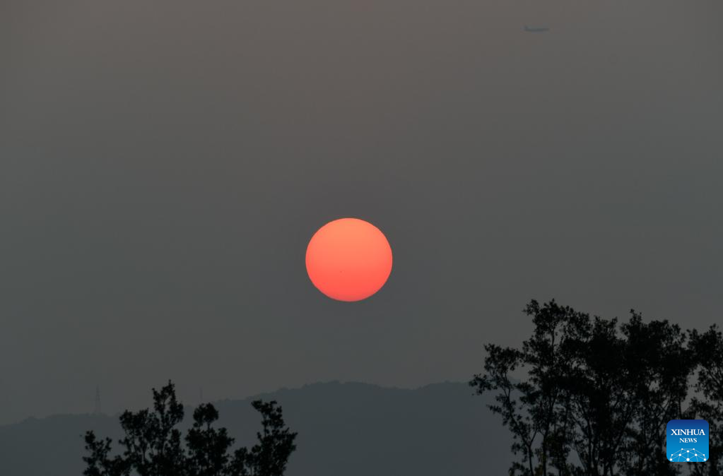 Aerial photo taken on March 10, 2022 shows the sunset seen from Guangyang Isle in southwest China's Chongqing. Guangyang Isle, the largest island on the upper Yangtze River, is rich in natural resources. In recent years, a series of measures have been taken to restore the natural ecological environment of the island. Now, the island attracts a large number of tourists every spring. (Xinhua/Wang Quanchao)