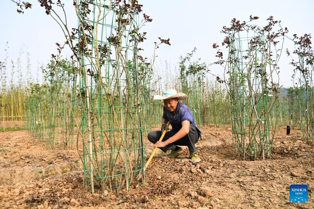 A staff member works to restore the ecological environment of Guangyang Isle in southwest China's Chongqing on March 10, 2022. Guangyang Isle, the largest island on the upper Yangtze River, is rich in natural resources. In recent years, a series of measures have been taken to restore the natural ecological environment of the island. Now, the island attracts a large number of tourists every spring. (Xinhua/Wang Quanchao)