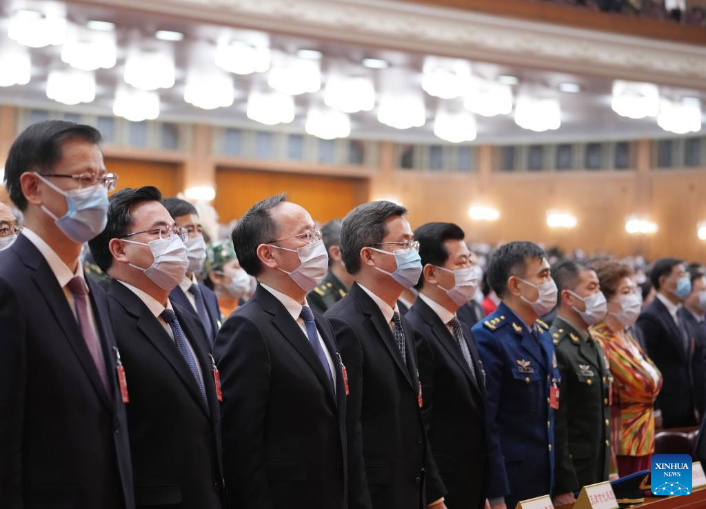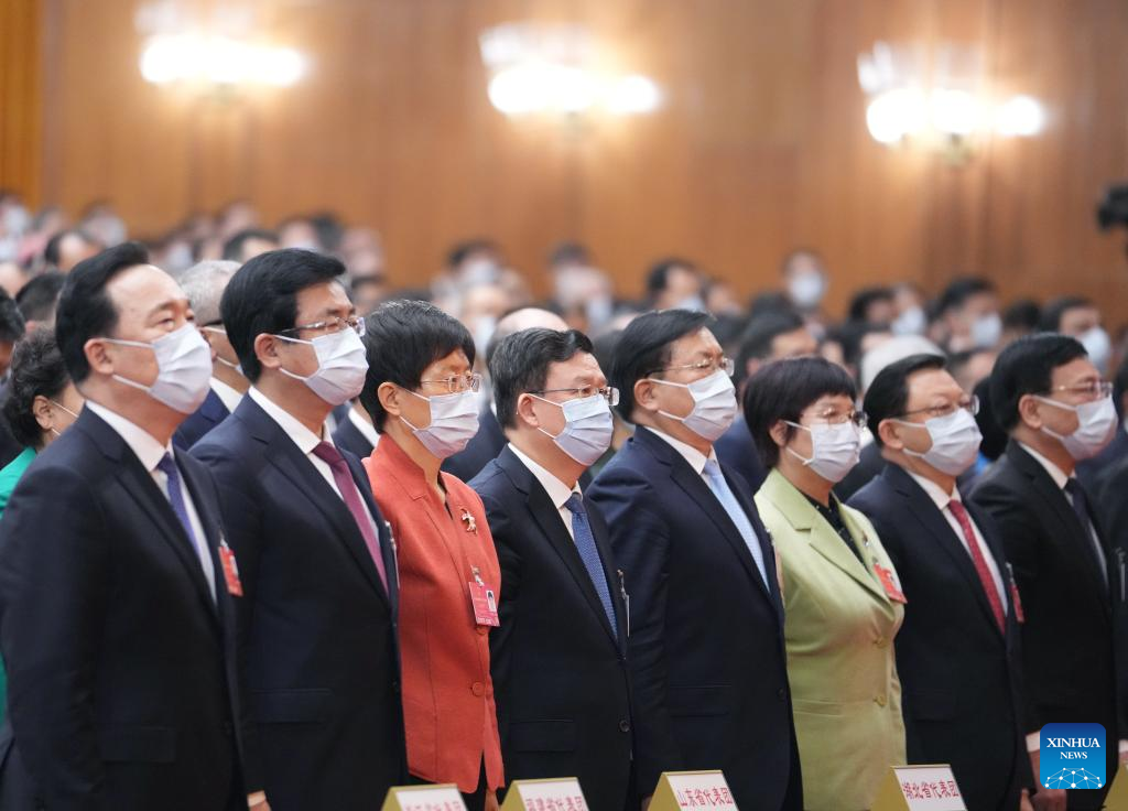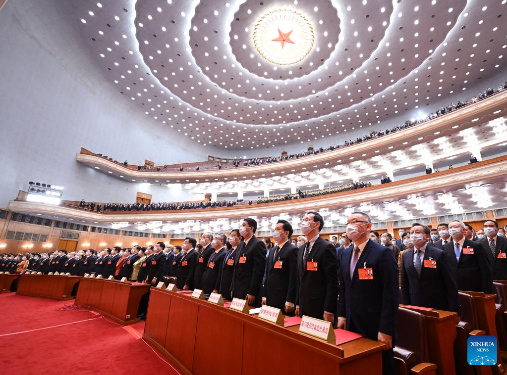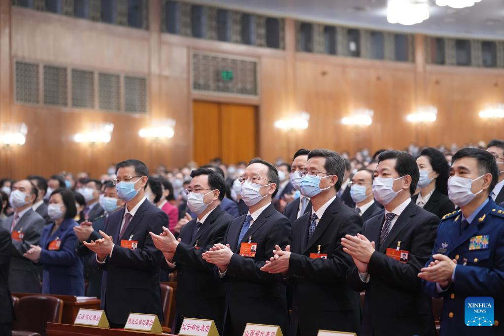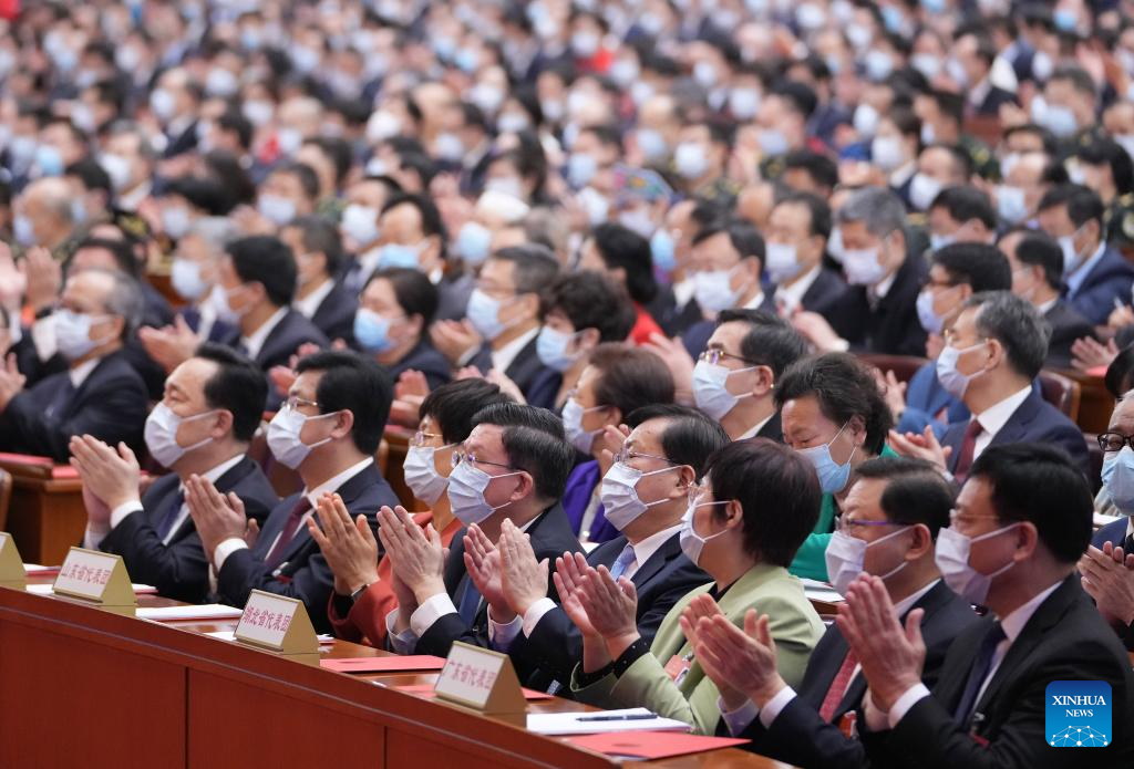 The closing meeting of the fifth session of the 13th National People's Congress (NPC) is held at the Great Hall of the People in Beijing, capital of China, March 11, 2022. Leaders of the Communist Party of China and the state Xi Jinping, Li Keqiang, Wang Yang, Wang Huning, Zhao Leji, Han Zheng and Wang Qishan attended the meeting, and Li Zhanshu presided over the closing meeting and delivered a speech. (Xinhua/Huang Jingwen)