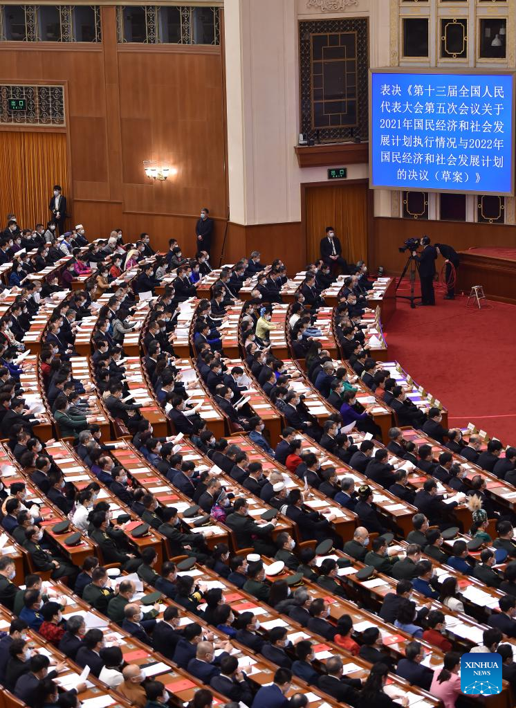 The closing meeting of the fifth session of the 13th National People's Congress (NPC) is held at the Great Hall of the People in Beijing, capital of China, March 11, 2022. (Xinhua/Yao Dawei)