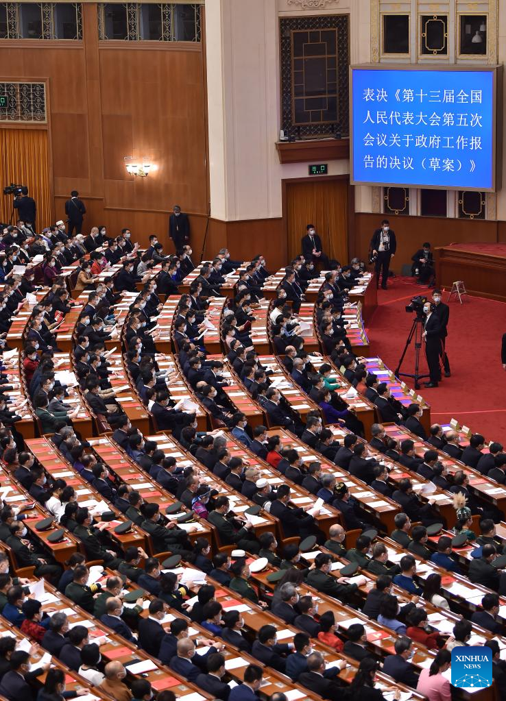 The closing meeting of the fifth session of the 13th National People's Congress (NPC) is held at the Great Hall of the People in Beijing, capital of China, March 11, 2022. (Xinhua/Shen Hong)